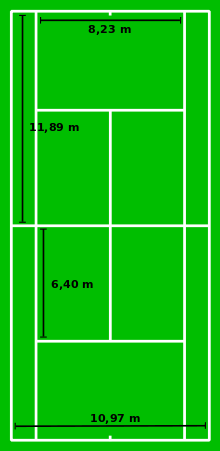 Césped verde: la más rápida de todas, salvo esos casos de alfombra muy rápida, la característica es el escaso pique de la pelota, patina en vez de picar alto, sale más rápido de lo que viene y los piques son muy irregulares a causa de las diferencias en el césped y en el suelo.
